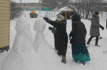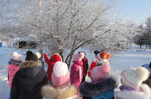 Ел саен балалалар бакчасының территориясе кардан ясалган фигуралар белән күңелләрне күтәрә. Кардан фигураларны ясауда балалар актив катнаштылар: карларны көрәделәр, шарлар ясадылар. Балаланың бу эштә катнашулары аларда хезмет сөючәнлекне тәрбияли, күмәк эшнең нәтиҗәсенә скалык белән карарга. Хәзер урамда йөрергә балалар өчен аеруча күңелле.