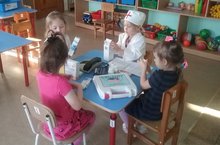 “Каенкай” балалар бакчасының 1 кече “А” төркем балалары “Чәчтарашханә” сюжетлы-рольле уенын уйный башладылар. Аның өчен алар төрле уенчыклар кулланалар. Кайчыларны, таракларны, фенны сабыйлар Лего детальләреннән ясадылар. Балаларның уеннары үзләренә бик ошады.