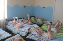 Йокыдан уяну – мөһим вакытларның берсе. Шуның өчен “Каенкай” балалар бакчасының 1 кече “А” төркемендә тәрбиячеләр Надежда Егорова һәм Екатерина Зеленцова көн саен төшке йокыдан соң балалар белән яткан килеш гимнастика үткәрәләр.