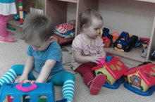 Детям 1 «в» младшей группы очень нравится играть в течении дня с дидактическими игрушками – вкладышами, которых в нашей группе не мало. У детей такие игрушки очень хорошо развивают мелкую моторику рук и заставляют ребят думать, размышлять. Так же развивают у малышей внимание и сосредоточенность