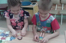 Дети 1 младшей «А» группы МБДОУ «Верхнеуслонский детский сад «Берёзка» пробуют конструировать из бумаги, что способствует знакомству со свойствами бумаги через телесные ощущения.