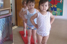 С целью закаливания стоп и профилактики плоскостопия воспитатели 1 младшей «В» группы МБДОУ «Верхнеуслонский детский сад «Березка» во время занятий развития движений, игр используют массажные коврики, дети занимаются босиком.