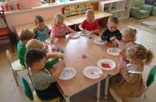 Сегодня к ребяткам младшей группы в гости приходила матрёшка. Малыши познакомились с новой игрушкой - матрешкой. При этом их ожидал сюрприз, когда из одной матрёшки появлялись все новые и новые. И вот они увидели много матрёшек. Ребятки выбирали самую большую и самую маленькую, выставляли их по порядку и рассматривали их наряды. Играя с новой игрушкой ребята получили много положительных эмоций и познакомились с русской деревянной игрушкой.