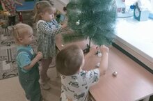 Совсем скоро наступит волшебный праздник - Новый год. Для детей приближение праздника- это всегда радостное и долгожданное событие. Ребятки младшей группы с нетерпением ждут свой первый новогодний праздник в детском саду, который с каждым днём всё ближе и ближе. В ожидании новогоднего чуда ребятки помогали нарядить ёлочку и украсить группу. Каждый ребенок выбрал украшение и сам повесил его на ёлку. Довольные и счастливые ребятки увидели результат своего совместного труда. Нарядная елочка украсила группу. В подготовке к празднику приняли участие и родители. Дома совместно с детьми изготовили красивые новогодние поделки, которые красуются в группе и украшают её. Праздничная атмосфера готова, а мы ждём наступления праздника