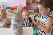 Сегодня, 31.07.2015г. в МБДОУ «Верхнеуслонский детский сад «Березка», к детям 1 младшей «В» группы в гости пришел промокший зайка.