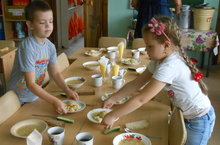 Воспитанники МБДОУ «Верхнеуслонский детский сад «Березка» с удовольствием выполняют обязанности дежурных по столовой: аккуратно расставляют чашки, тарелки, раскладывают столовые приборы.