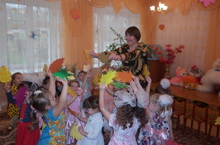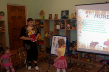 «Девица-красавица Осень к нам пришла,И подарков ярких людям принесла.Яблоки и груши, спелый виноград,Вкусным витаминам всяк сегодня рад»… -