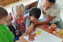 Сегодня к ребятам второй младшей группы «Колокольчик» МБДОУ «Верхнеуслонский детский сад «Берёзка» на интегрированное занятие пришли бабка и дедка, у которых укатился «Колобок» и они не могут его найти. С помощью сказочных героев воспитанники учились пересказывать сказку,назвали всех героев, с которыми встретился «Колобок», а затем воспитатель Людмила Тимиряева предложила деткам слепить колобок. Ребятки очень старались помочь сказочным героям бабушке и дедушке и работы получились интересными.