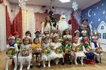 Во второй младшей группе "Жемчужинки" сегодня прошёл Новогодний утренник. На празднике ребята танцевали, пели песни,рассказывали стихи и встречались со сказочными гостями. К ним приходила Снегурочка, Вьюга, Дед Мороз, который подарил им сладкие подарки. Праздник прошел весело и принёс много радости ребятам.