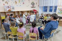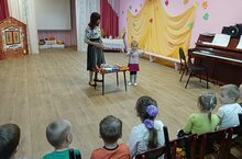К ребятам второй младшей группы в гости пришёл бельчонок, который попросил у детей помощи. Ребята с радостью согласились помочь и все дружно собирали шишки, грибы и орешки. В благодарность бельчонок подарил детям осенние листочки и предложил станцевать танец "Листопад". Ребята остались в восторге от лесного гостя, получили много положительных эмоций на весь день. -