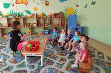 Солнечное лето, свежие фрукты и овощи на столе — и никаких витаминов больше не надо! Воспитанники второй младшей группы «Жемчужинки» провели традиционный осмотр урожая в огороде детского сада. Ребята с удовольствием интересуются тем, что растёт на грядках. Они искренне удивляются и радуются, когда видят изменения в размере овощей после дождливых и солнечных дней. В ходе развлечения «День витаминов с грядки» была проведена викторина: «А что мы знаем о фруктах и овощах, которые едим? Какие витамины они содержат и какая от них польза?» Ведь многие из них, кроме того, что они вкусные еще и обладают лечебными свойствами.