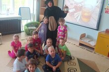 Ежегодно 14 августа православные христиане отмечают первый августовский Спас – Медовый. Медовым этот Спас назван потому, что к этому дню пасечники приступают к сбору мёда, соты полны свежим янтарным и запашистым мёдом. Считается, что с этого времени пчёлы перестают собирать пыльцу с цветов. К Медовому Спасу дети подготовительной группы "Колобок" и средней группы "Жемчужинки" готовились заранее. В течение недели ребята наблюдали, как трудятся маленькие пчёлки, как они собирают нектар с душистых цветов. Познакомились и с приметами, связанными с медовым спасом, выучили пословицы и поговорки про мёд. И, конечно же, всё закончилось весёлым праздником-развлечением "В гостях у Медового Спаса". Ребята водили хороводы, отгадывали загадки, играли в игры "Передай бочонок Мёда", "Потрудись как Пчёлка", "Принеси нектар". В конце праздника ребята получили угощение.