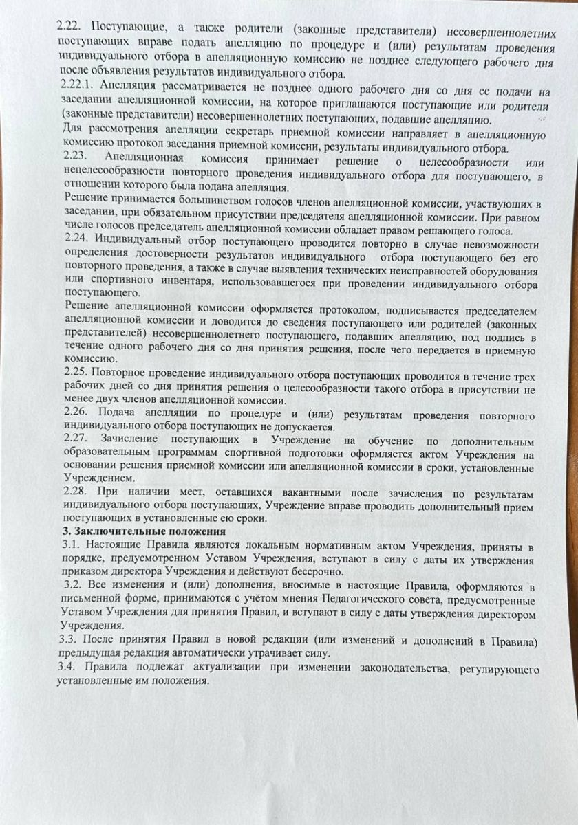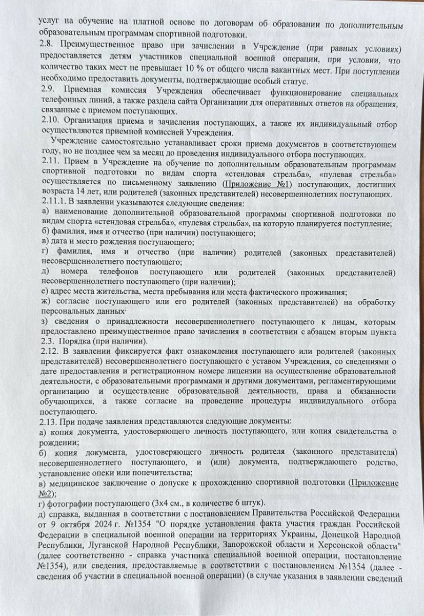 Правила приема на обучение по дополнительным образовательным програмам