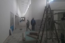 В МБОУ "Верхнеуслонская гимназия" ремонт продолжается. Итет штукатурка входной группы, покраска стен, укладка линолеума, установка парапедов на крыше, закончены работы по установки вентиляции на крыше, а в столовой продолжается укладка плитки.