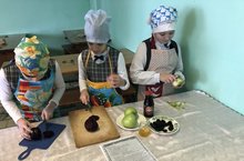 Ученики 4-а класса приняли участие в отборочном туре Первого Кулинарного конкурса на сайте «Правильное питание». Родители приняли активное участие в составлении рецепта. Работа «Мамин правильный салат» прошла отборочный тур и вышла на первый этап конкурса. Для этого нужно было отправить презентацию с описанием и фотографиями, демонстрирующими этапы приготовления блюда детьми в классе. Идёт подготовка к первому этапу. Ученики готовят салат для отправки презентации на конкурс.