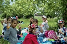 Тишину сегодняшнего утра в лагере нарушили громкие крики индейцев. Три племени «Чингачгук», «Папаго» и «Индуаны» собрались на поляне ,чтобы показать свою ловкость и сноровку. Индейцы соревновались в скачках на коне, ловили рыбу для пропитания , охотились и переправлялись через глубокую яму, писали друг другу зашифрованные письма, танцевали ритуальные танцы. Все племена успешно справились с испытаниями. Победу одержало племя «Индуаны» .Индейцлар көнеИртәдән үк лагерь шау-шуга күмелде, чөнки бүген индейцлар көне .”Чингачук”, “Папаго”, “Индуаннар” аланга җыелып тапкырлыкларын Һәм җитезлекләрен күрсәттеләр. Алар ауга бардылар, ат чабышында катнаштылар, балык тоттылар, шифрлар белән хатлар яздылар, биюләр башкардылар. Барысы да биремнәрне төгәл үтәделәр, ә җиңүче – “Индуаннар”. -