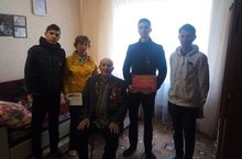 Гимназиянең волонтёрлары Бөек Ватан сугышы ветераны Зайдуллин Х.Г.янында булдылар, "Үлемсез полк" акциясенә чакырдылар һәм аның өенә "Монда ветеран яши"дигән такта беркеттеләр. -