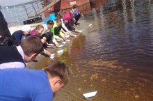 6 Б класс МБОУ «Верхнеуслонская гимназия» принял участие в акции «Кораблик Победы». На уроке рисования дети сами сделали кораблики, написали имя своего дедушки, прадедушки, который участвовал в Великой Отечественной войне, и отпустили эти кораблики по реке Волга. Затем их почтили минутой молчания. Так же после этого мероприятия дети посетили и поздравили детей войны, которые проживают на улице Набережная.Җиңү корабыЮгары Ослан гимназиясенең 6 нчы Б сыйныфы укучылары “Җиңү корабы” акциясендә катнашты. Рәсем дәресендә балалар үз куллары белән кораблар ясадылар һәм анда сугышта катнашкан бабайларының исемнәрен яздылар. Соңыннан бу кораблар Идел елгасына җибәрелде. Әлеге чарадан соң, укучылар Яр буе урамында яшәүче сугыш балаларын Җиңү бәйрәме белән котладылар. -