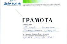 В субботу, 02.04.2016, в Зеленодольском Лицее № 9 прошел заключительный республиканский этап Всероссийского конкурса «Живая классика». От гимназии участие в нем приняла ученица 6А класса Жесткова Виктория (учитель Тихонова Т.Н.).“Тере классика” нәтиҗәләреШимбә көнне Яшел Үзәннең 9 нчы номерлы Лицеенда “Тере классика” Бөтенрәссәй конкурсының республика буенча соңгы этабы узды. Гимназиядән 6 нчы А сыйныфы укучысы Жесткова Виктория катнашты(укытучы Тихонова Т.Н.). -