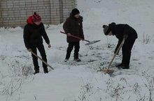 Территорияне кардан чистартуБүген урта сыйныф укучылары гимназия территориясен кардан чистарттылар. -