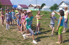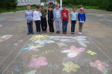 19 июня в лагере «Радуга» была проведена игровая программа «Летняя мозаика». На площадке дети были вовлечены в различные подвижные игры, организованные воспитателями и взрослыми девочками-вожатыми. После обеда дети вышли на площадку, чтобы посоревноваться в творчестве. Ребята рисовали рисунки на асфальте.