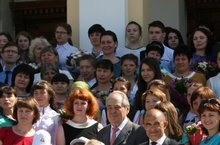 Яркое солнце и чистое небо стали предвестниками удивительного, трогательного, торжественного праздника «Последний звонок». Этот день стал особенным не только для выпускников, но и для всей гимназии тем, что впервые гимназию посетил Глава Верхнеуслонского муниципального района М.Г. Зиатдинов. Присутствие первого лица района придало особенную стройность и строгость празднику.