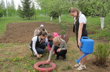 На пришкольном участке учащиеся, под руководством Жуковой Н.А, Кузнецовой Л.Г подготовили почву и посеяли морковь, свеклу, посадили капусту и лук.
