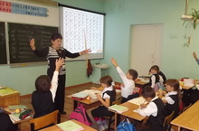 Сегодня, 11 октября, на базе МБОУ «Верхнеуслонская гимназия» состоялся семинар для молодых учителей татарского языка по теме: «Обучение по новым учебникам “Күңелле татар теле” в свете требований ФГОС». В течение двух уроков опытнейший учитель татарского языка и литературы Верхнеуслонской гимназии Танзиля Гарифовна Алехина показывала разнообразные методы и приемы работы. В течение двух уроков ученики второго класса активно работали без напряжения и усталости. Искусно встроенные в урок физкультминутки и игры не только снимали напряжение, но и выполняли четко запланированные учителем задачи. Благодаря разнообразным упражнениям в ходе уроков были задействованы все виды речевой деятельности, доступные второклассникам: говорение, письмо, аудирование, изучен и отработан сложный грамматический материал. Такое построение урока, когда 70-80% времени отводится на разговорную речь, позволяет учителю решить главную задачу: научить русскоязычных детей общаться на татарском языке.