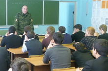 По сообщению Марии Анохиной и Светланы Широковой, в преддверии Дня защитника Отечества руководитель клуба Наталья Рахчева пригласила в гости к десятиклассникам участника боевых действий в Чеченской Республике Алексея Владимировича Балашова.