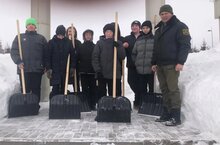 Вооружившись лопатами, ребята под руководством Михайлова Ф.Т. вышли на расчистку Парка Героев. Работа спорилась: ребята трудились дружно, весело и с настоящим задором. Всего за час дорожки, прилегающие площадки и мемориальные плиты были полностью освобождены от снежного плена.