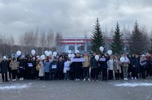 Гимназисты почтили память жертв ДТП, выйдя на улицу с плакатами «Соблюдай ПДД!», «#ЖИТЬ» и белыми воздушными шарами.