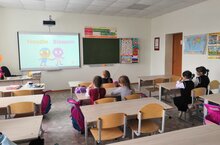 В новом учебном 2022-2023 году в гимназии образовался первый полилингвальный класс с изучением татарского и английского языков. В форме внеурочной деятельности с ребятами 1В класса был проведён "Занимательный английский". Дети обучились стандартным фразам знакомства и спели весёлую песню.