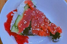 На уроке технологии девочки из 7 класса приготовили суши торт "Филадельфия"