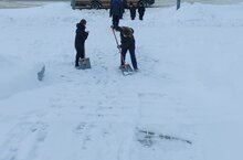 Команда ЮИД МБОУ "Верхнеуслонская гимназия им. Зиннурова Н.Ш." произвела уборку от снега на территории Парка Героев.