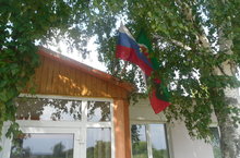 Реют флаги на здании.