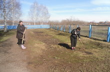 Сотрудники детского сада и школы приняли активное участие в субботнике. -