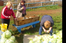 Сотрудники, выращенный на своем участке урожай капусты, переработали для зимнего хранения. Капуста в этом году уродилась на "славу". Урожая хватило и для засолки, и для приготовления салатов из свежей капусты на осенний период.