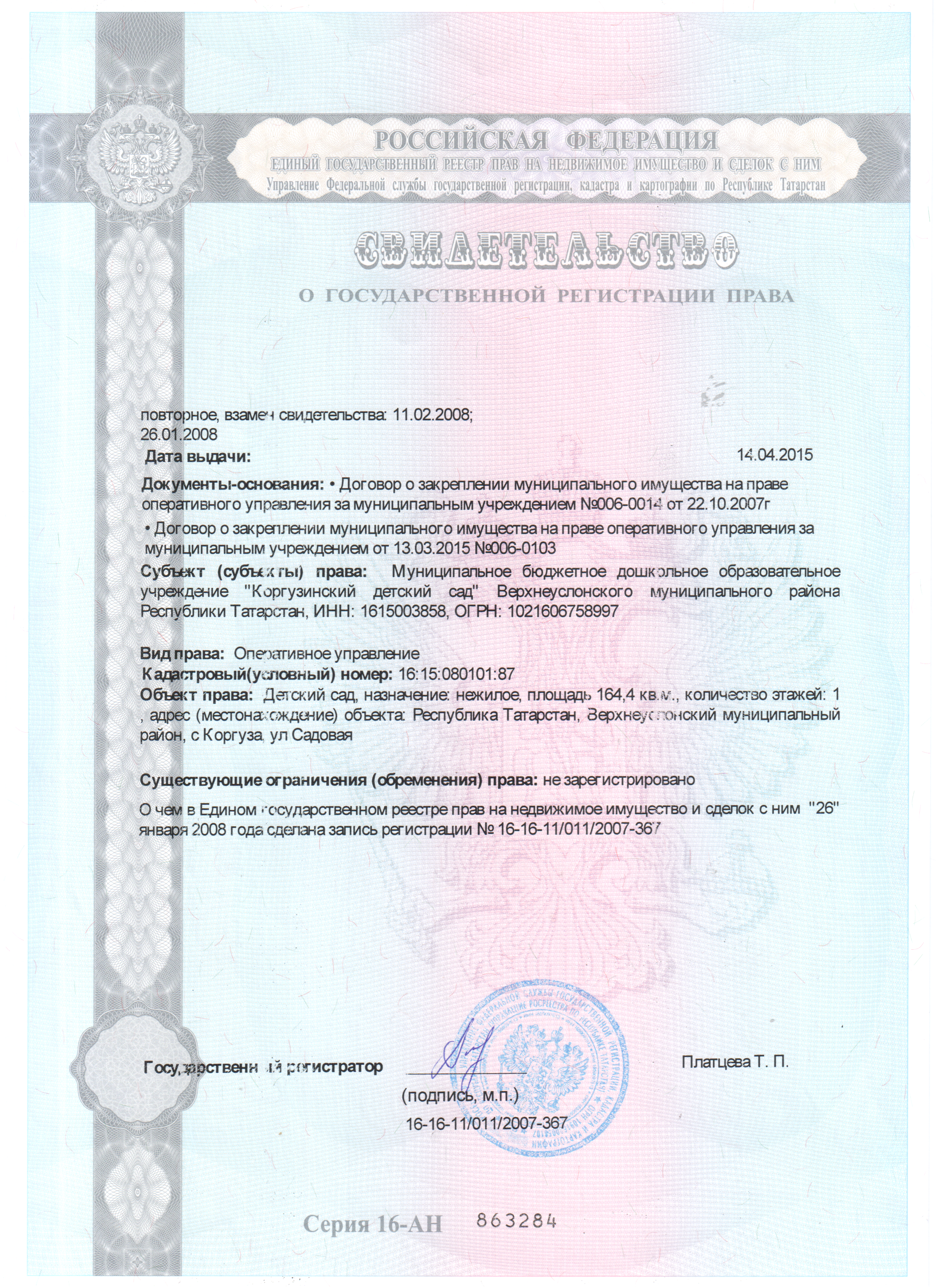 | Адрес: | 422586, Республика Татарстан, Верхнеуслонский район, с. Коргуза, ул. Садовая, д. 5 |