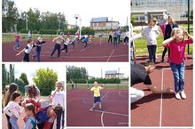 На баскетбольной площадке развернулась настоящая борьба за звание «Самый-самый» в номинациях самый высокий и самый маленький, самый большой и маленький размер ступни, самая длинная коса, самый меткий и т.д. Дети соревновались в прыжках со скакалкой, прыжках в длину, отжиманиях, кручении обруча. В стороне не остались даже воспитатели Гузель Ганеевна и Наталья Павловна.