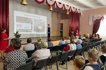 В этот день в нашей школе проходил семинар заместителей директоров по воспитательной работе. Активисты Движения первых вручили гостям значки с символикой Российской Федерации.
