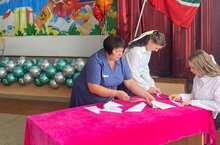 В рамках ежегодной благотворительной акции «Помоги собрать ребенка в школу!» 22 августа в нашей школе состоялось торжественное вручение портфелей будущим первоклассникам.