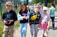 Незаметно пролетело время. Наступил день закрытия пришкольного лагеря «Радуга». Программа закрытия лагерной смены была интересной. Воспитатели организовали для ребят квест-игру «В поисках клада», которая состояла из таких этапов: тайное послание, кроссворд, собери карточки, викторина «Удивительные превращения», найди отличия. Дети разделились на 2 команды, на каждом этапе, выполнив правильно задание, получали подсказку. Задания были спрятаны на территории школы и детской площадки на кустах, около памятника, на горке, под качелями. Результатом игры был клад со сладостями.