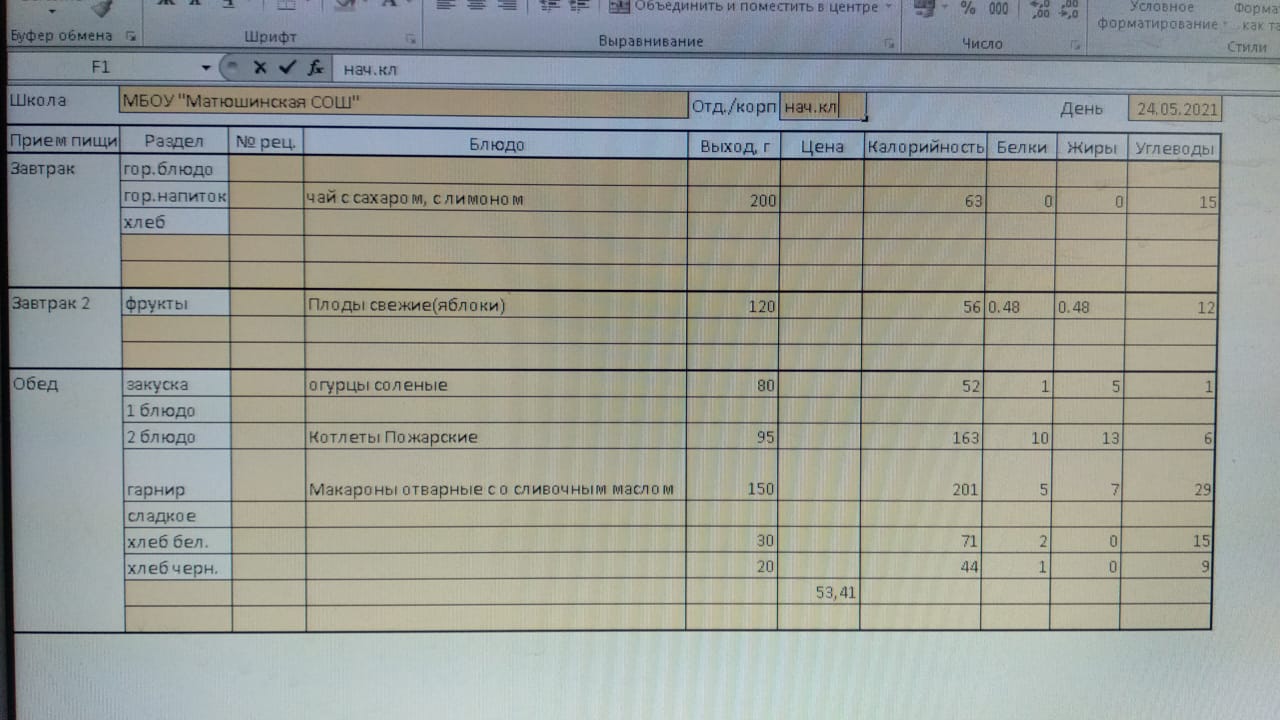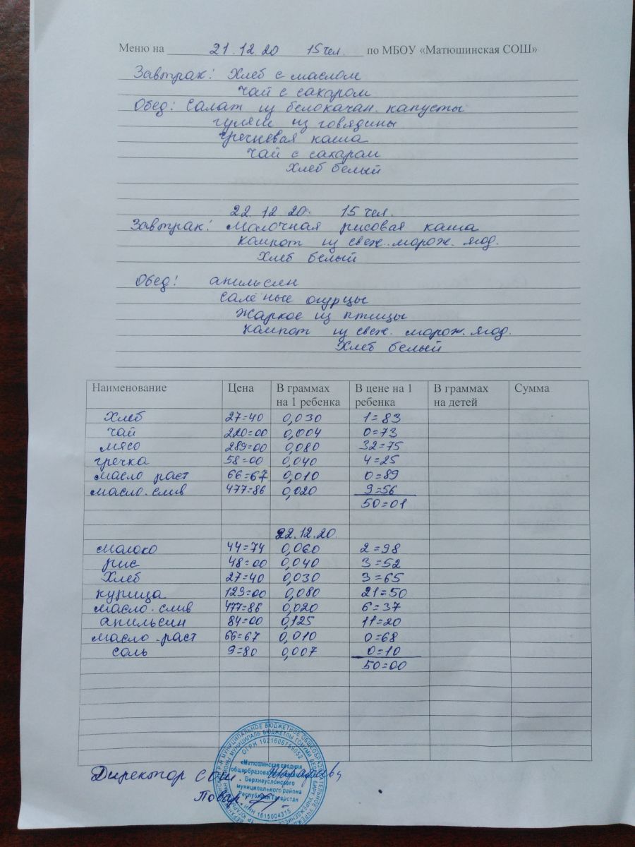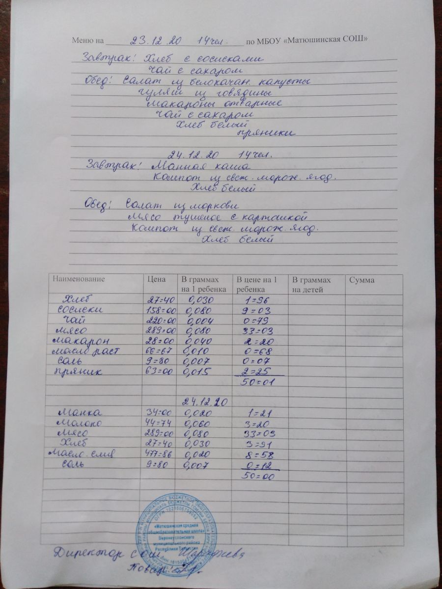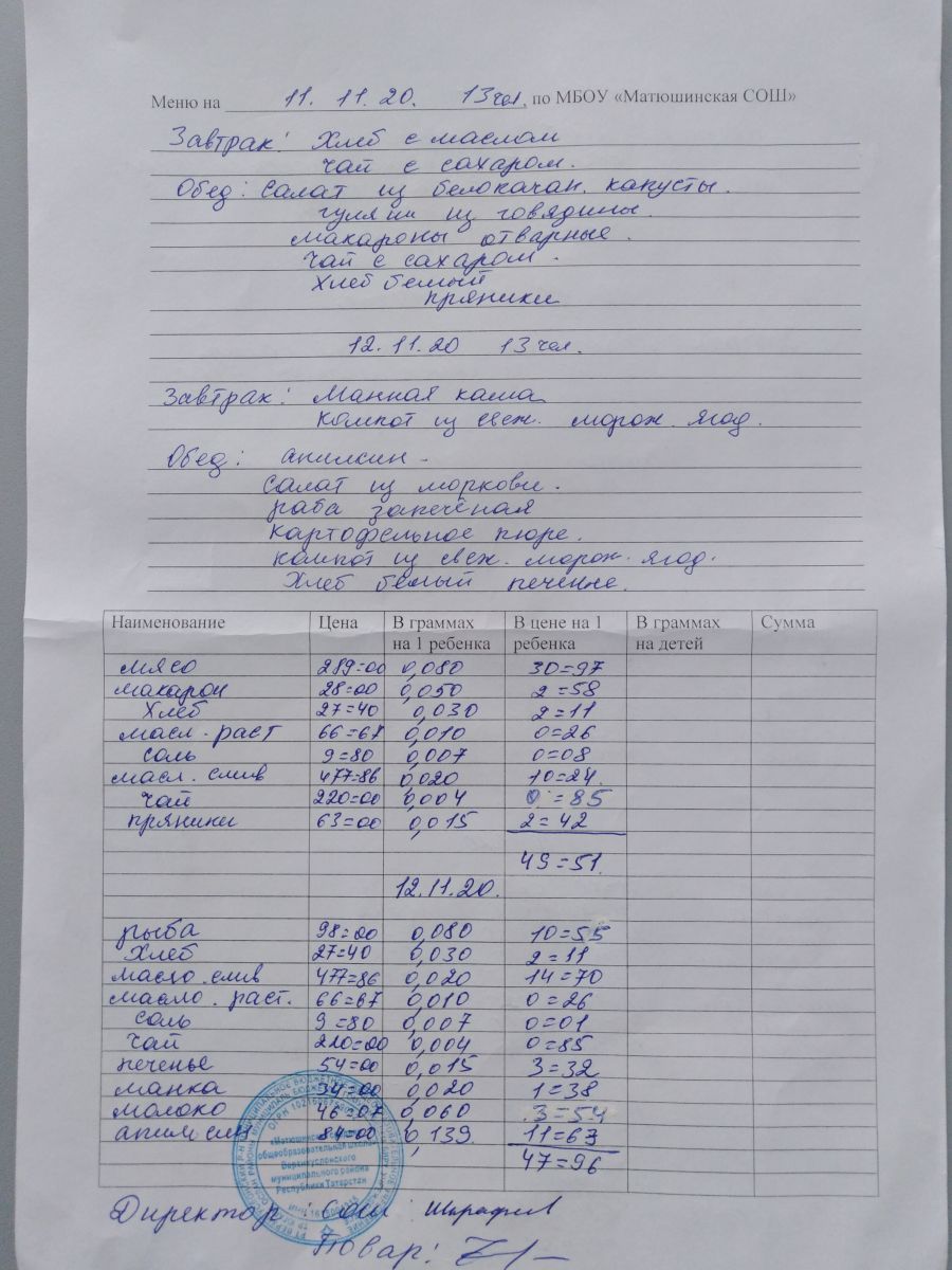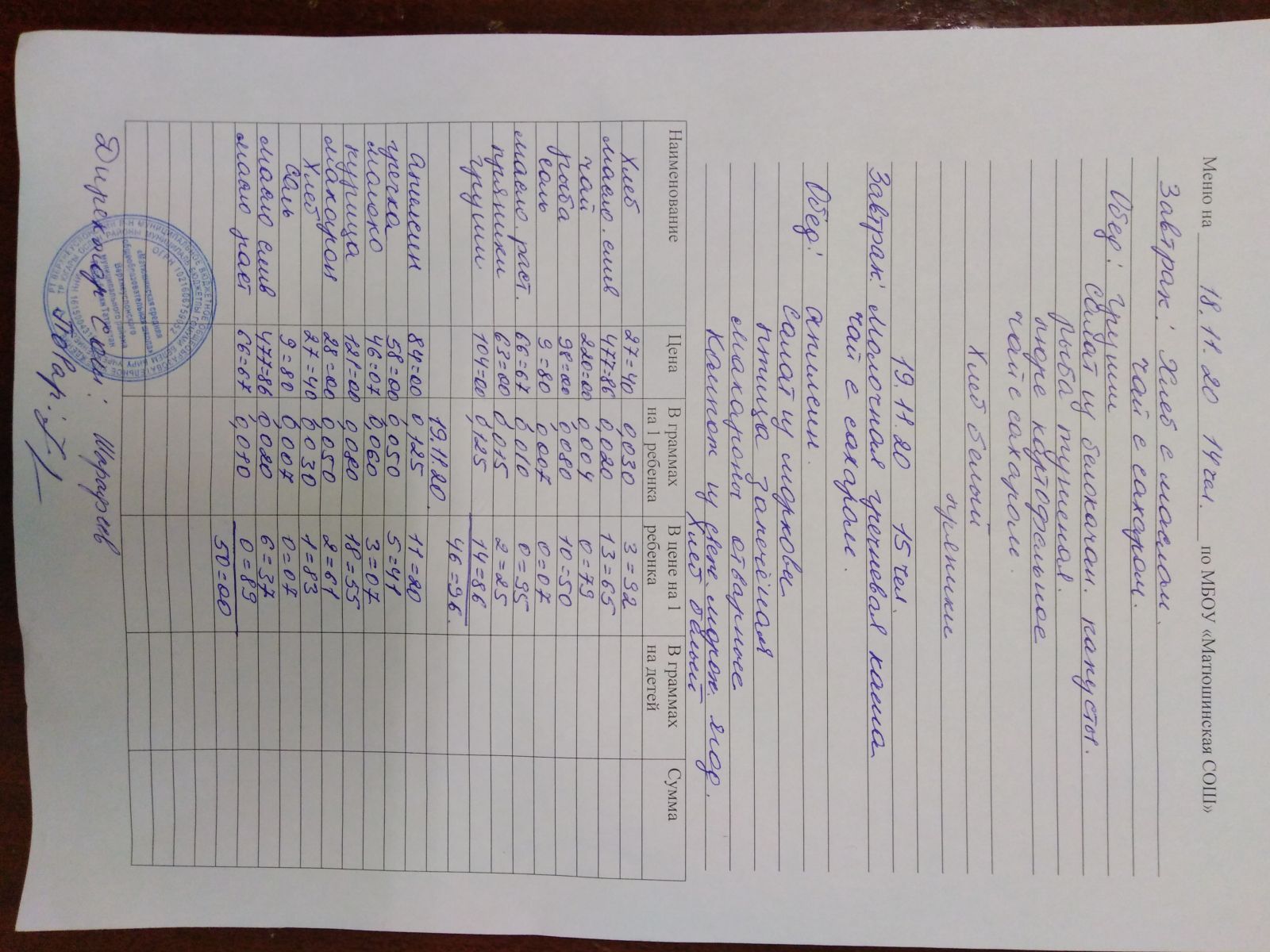 Организация питаания учащихся в школе 2020-2021 уч.год