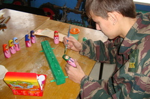 С целью формирования у учащихся знаний и умений по ручной и механической обработке древесины на кружке «Столярное дело» кружковцы выполняют различные творческие проекты. Гузельбаев Азат выполняет проект «Веселые матрешки», руководителем является Токарев Андрей Викторович.
