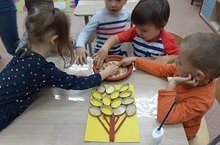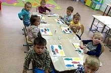 Сегодня воспитатель Динара Трусенёва с ребятами младшей подгруппы клеили рыбок.