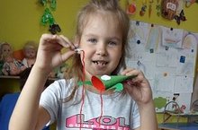 Сегодня на занятии по конструированию. Воспитанники старшей группы вместе с воспитателем Александрой Гильвановой изготовили тренажер из бумаги "Лягушка". Данный тренажер помогает развивать ловкость.
