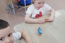 Сегодня воспитанники младшей группы вместе с воспитателем Наталией Григорьевой изготавливали кораблики.
