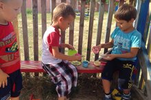 Прогулка для дошкольников это не просто игра, а познание окружающего, экспериментирование, открытие интересных и увлекательных вещей мира живой и неживой природы. Дети группы изучали сегодня свойства песка: сухой песок сыпется, а из мокрого можно лепить различные фигурки. Девчонки и мальчишки готовили угощения для сказочных гостей: кукол, мишек, зайчиков из песка. Торты, пирожные, куличи украшали камешками и листочками. Песочная кулинария оказалась увлекательным занятием! Малыши остались довольны своей работой!