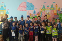 В ходе реализации плана Недели безопасности члены ЮИД с педагогом-организатором Кирилловой Надеждой провели с детьми разновозрастной группы развлечение «Веселое путешествие». Цель развлечения: закрепить в игровой форме правила дорожного движения на дороге. ЮИДовцы организовывали все эстафеты, которые проходили вперемежку с самыми серьезными конкурсами по Правилам дорожного движения, с музыкальным сопровождением. Благодаря дружной работе педагогов в этом направлении ребята ответили даже на самые трудные вопросы. Дети уверенно знают правила и знаки дорожного движения, знают для чего и в каких места устанавливаются знаки, что обозначают цвета светофора и много другого… Одним словом, азы дорожной азбуки малыши запомнили хорошо. Все участники программы получили хорошее настроение, позитивный настрой на выполнение правил дорожного движения. Эти правила все будут знать обязательно на 5 .