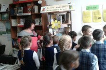 2сыйныф җитәкчесе Исмәгыйлева Венера юл хәрәкәте айлыгы кысаларында балалага авыл китапханәсегә бару өчен имин юл күрсәтте. Китапханә мөдире Прохорова Ильмира "Китап – минем дустым” дигән темага әңгәмә үткәрде . Китапханәдә укучылар бик күп матур китаплар һәм күргәзмәләр күрделәр.
